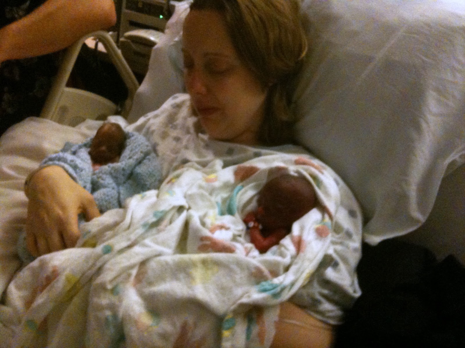 Me holding my babies together. I dreamed of this for so long, just not like this.
